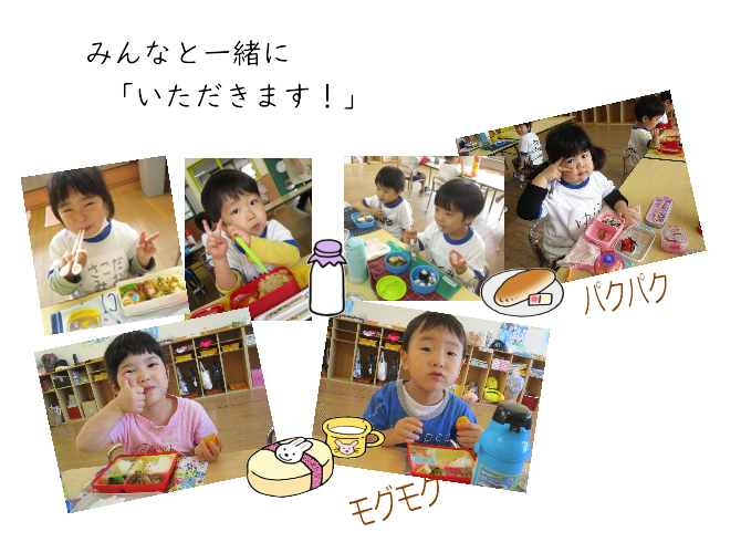 今日は何して遊ぼうかな?とワクワクしながら自分で考えて行動します。園庭遊びやブロックや絵本などで友だちと仲良く遊びます |